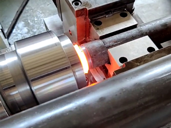 1.摩擦生熱·待焊的兩根鋼管(工件)分別夾持在設(shè)備的旋轉(zhuǎn)夾具和移動夾具上。·旋轉(zhuǎn)端高速旋轉(zhuǎn),移動端以一定壓力向旋轉(zhuǎn)端移動,使接觸面劇烈摩擦,機(jī)械能轉(zhuǎn)化為熱能,溫度迅速升高至材料的塑性狀態(tài)(接近熔點(diǎn)但未熔化)。